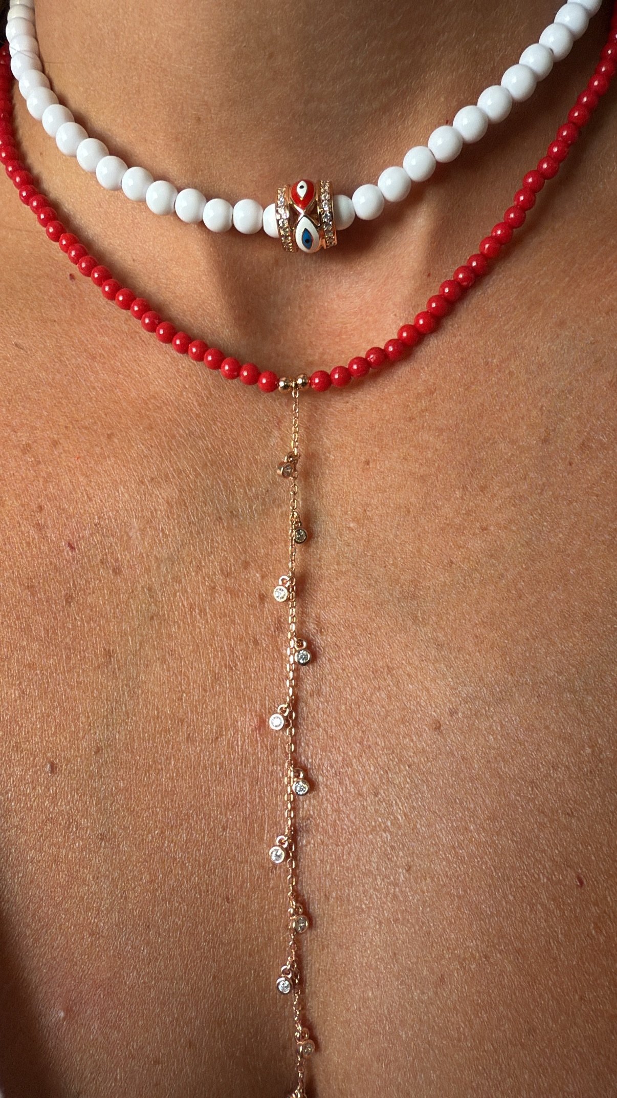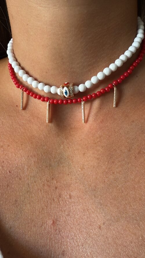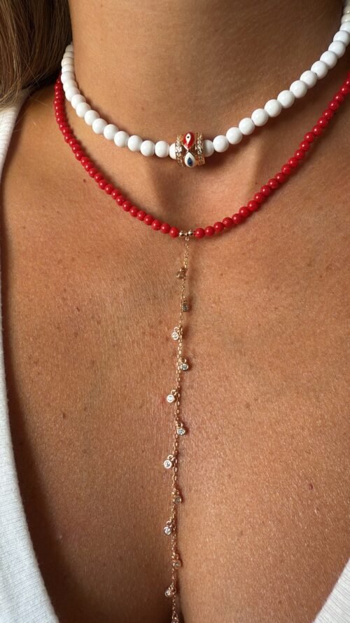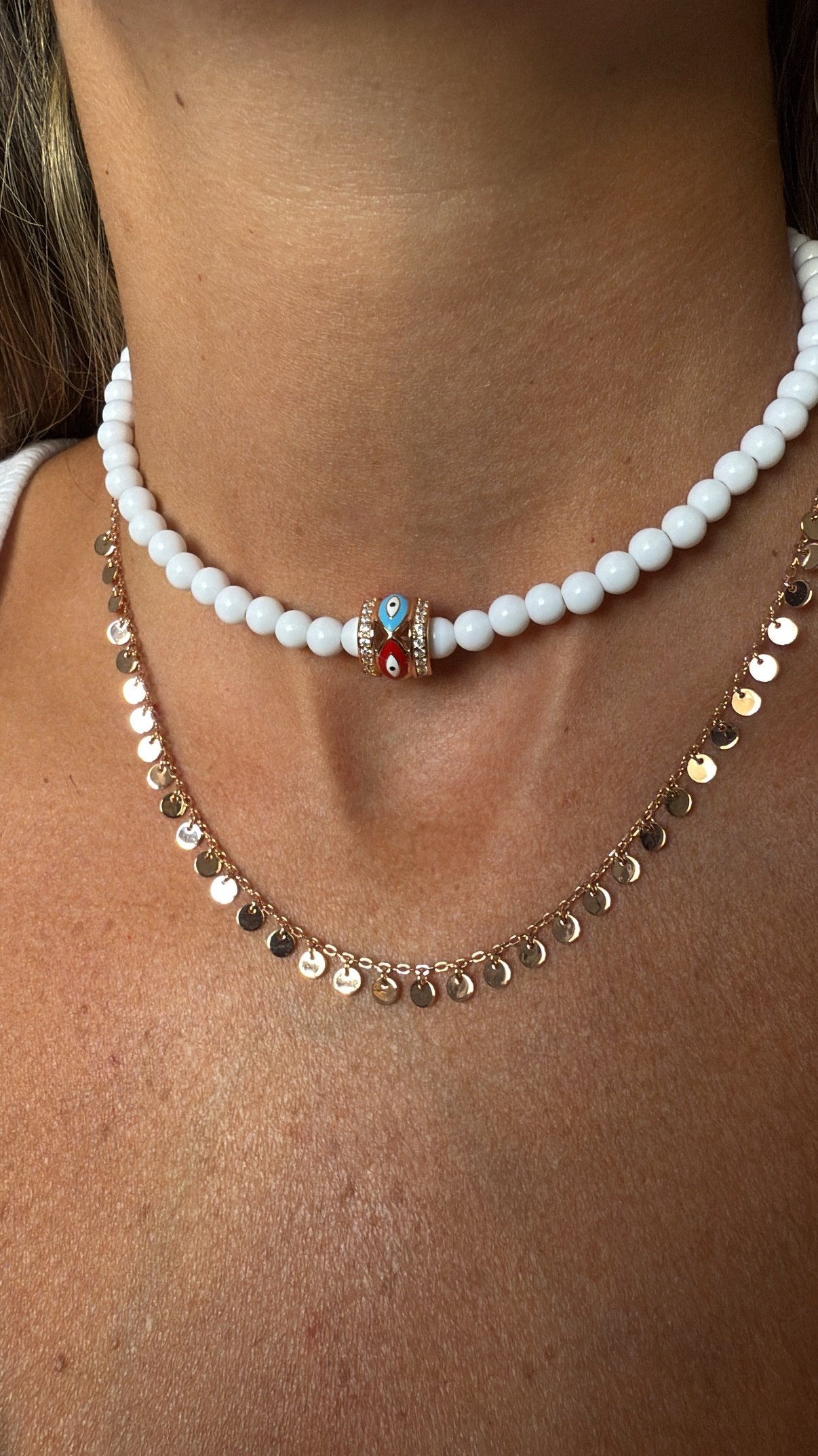 שרשרת חרוזים לבנים עם חרוז עיניים צבעוניות