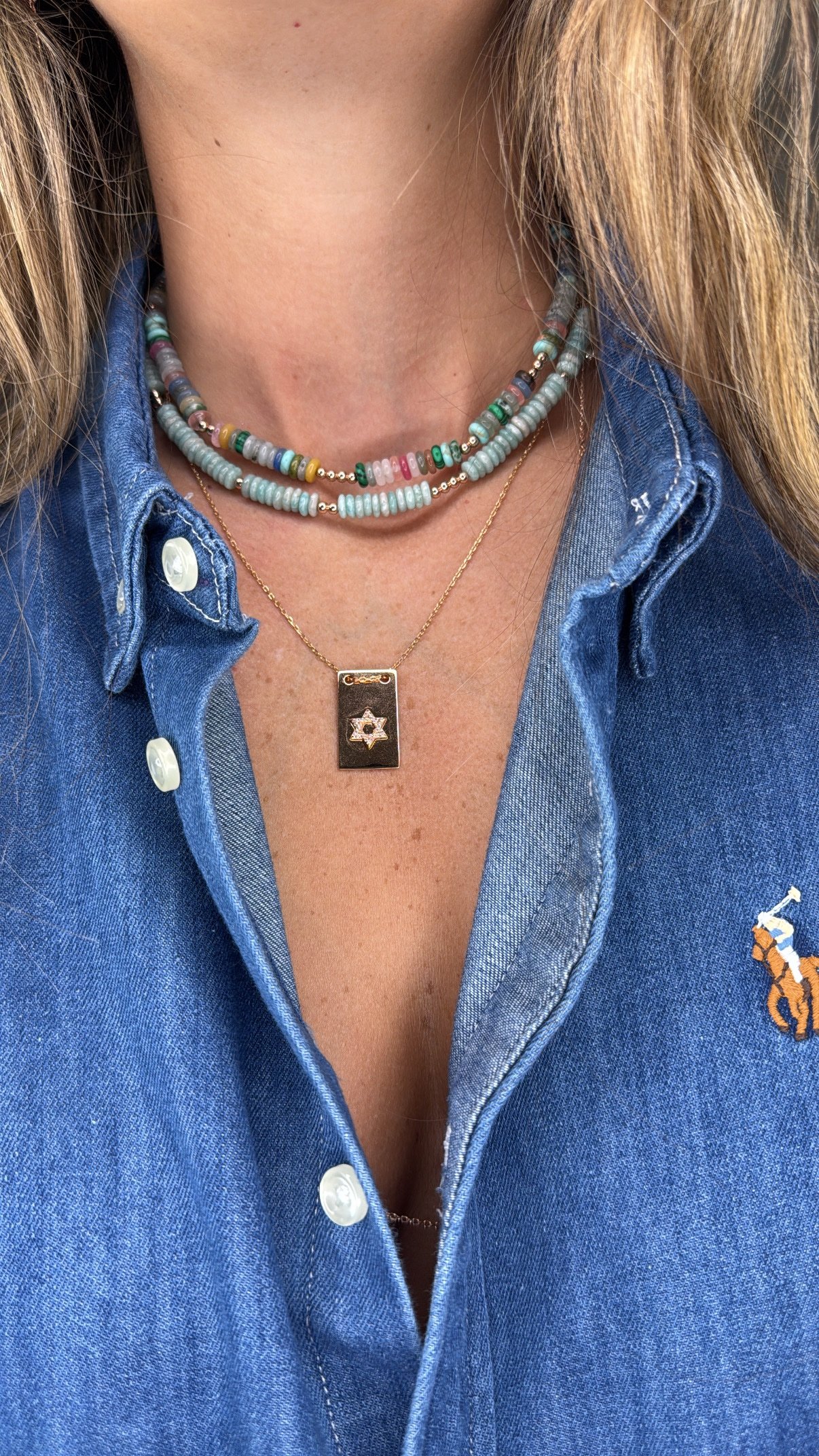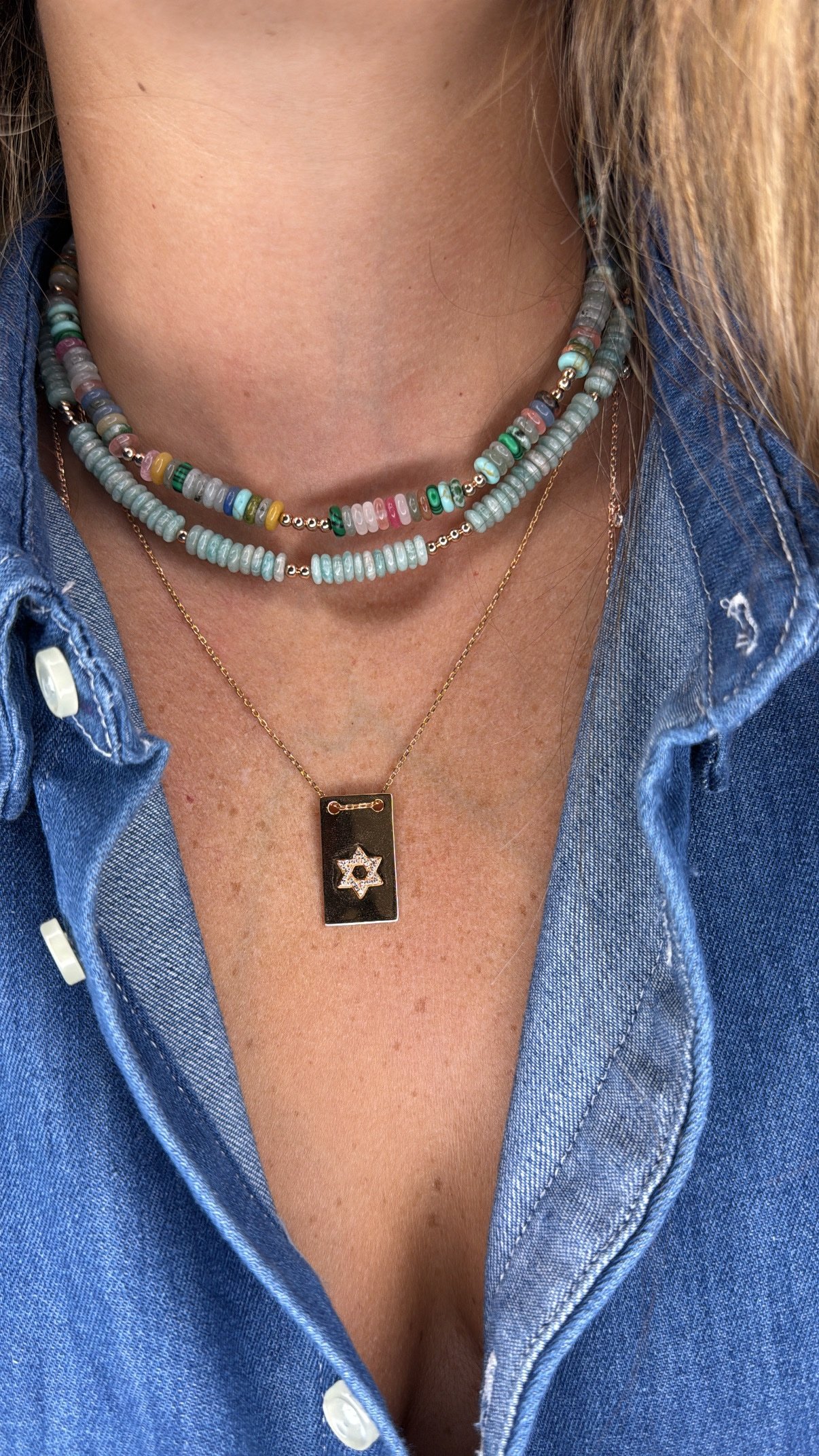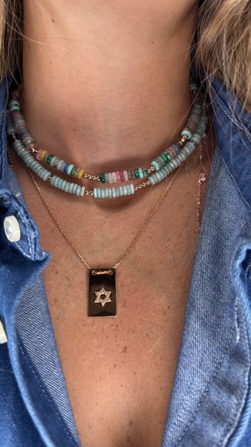 שרשרת חרוזים דיסקית תכלת