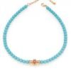 שרשרת חרוזים טורקיז בשילוב עין טורקיז, מכסף טהור 925 בציפוי רוז גולד. משובצת זרקונים