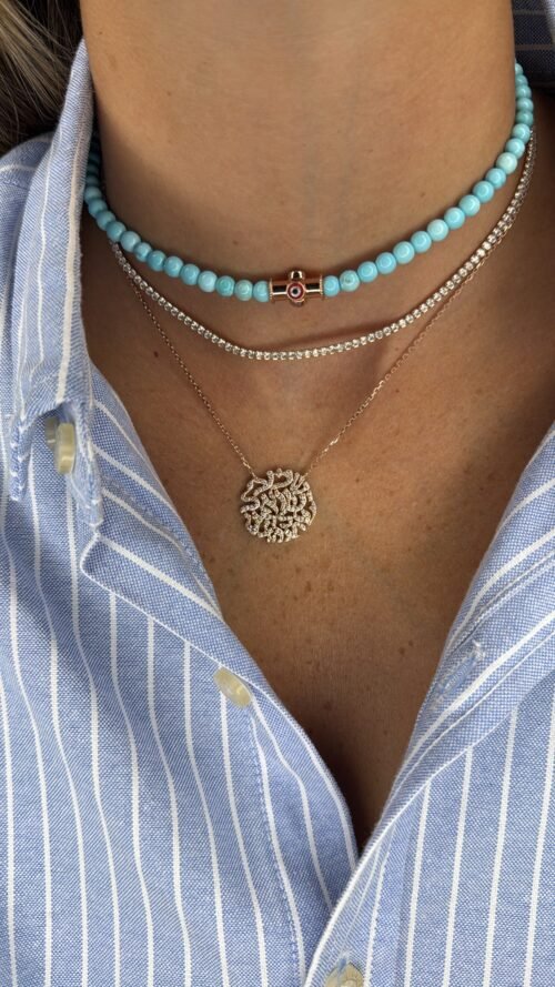 שרשרת חרוזים טורקיז בשילוב עין צינור