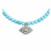 שרשרת חרוזים תכלת בשילוב עין טורקיז מכסף טהור 925 בציפוי רוז גולד. משובץ זרקונים.