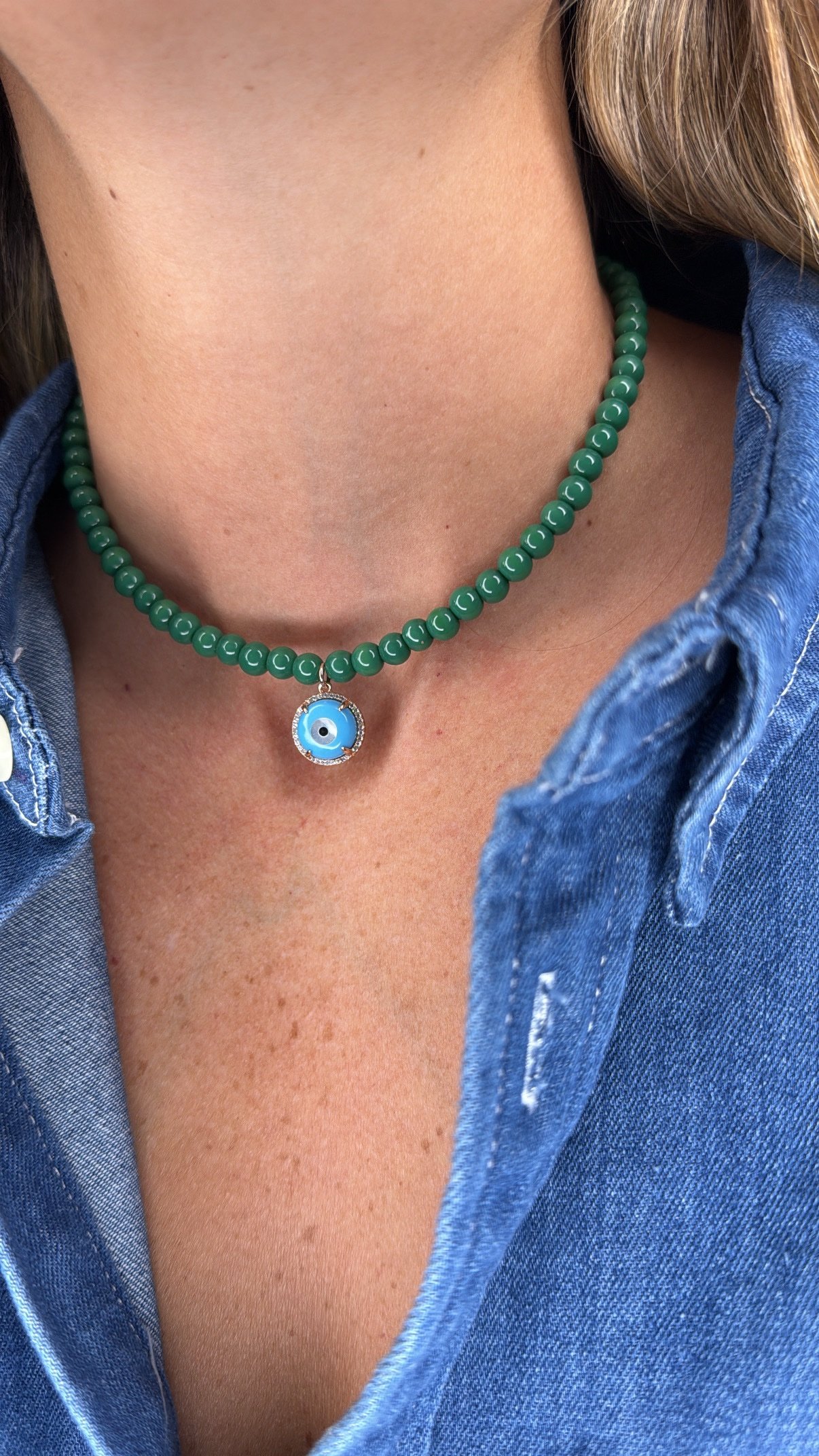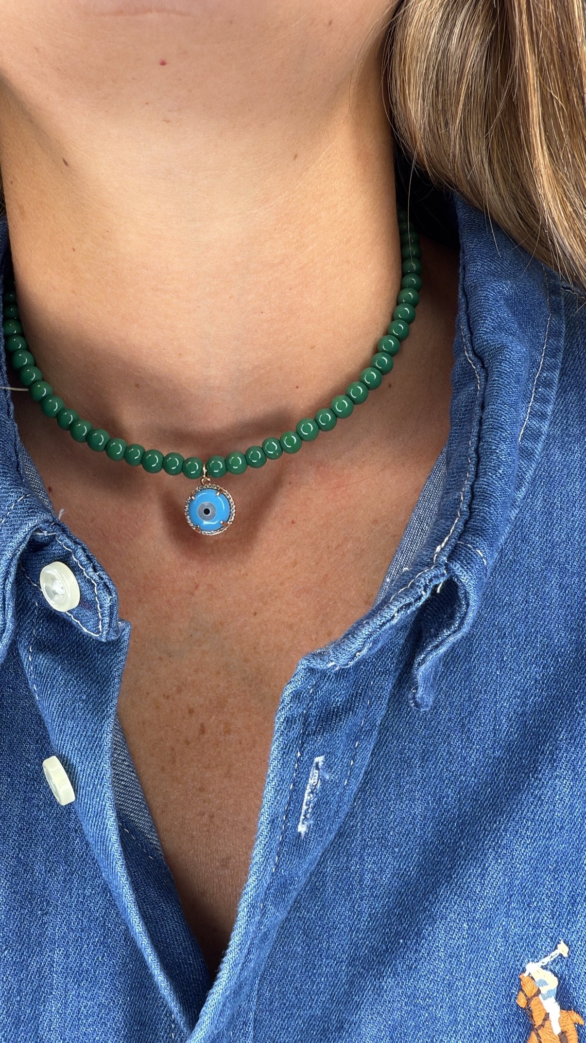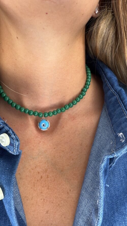 שרשרת חרוזים ירוקים עם עין טורקיז