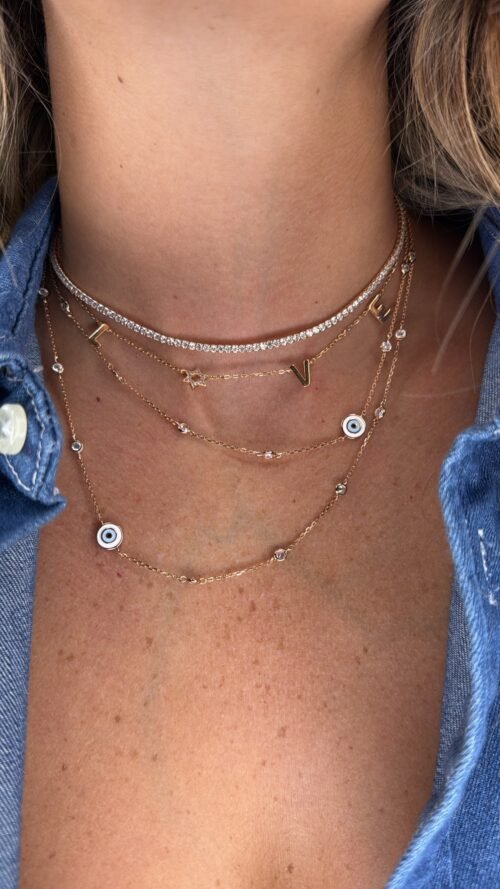 שרשרת טיפאני עיניים ארוכה, מכסף טהור 925 בציפוי רוז גולד. משובצת זרקונים.