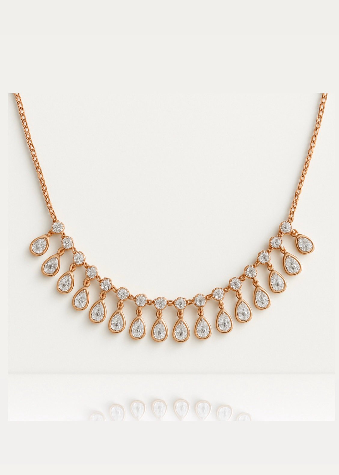 שרשרת טיפות נופלות, מכסף טהור 925 בציפוי רוז גולד, משובצת זרקונים.