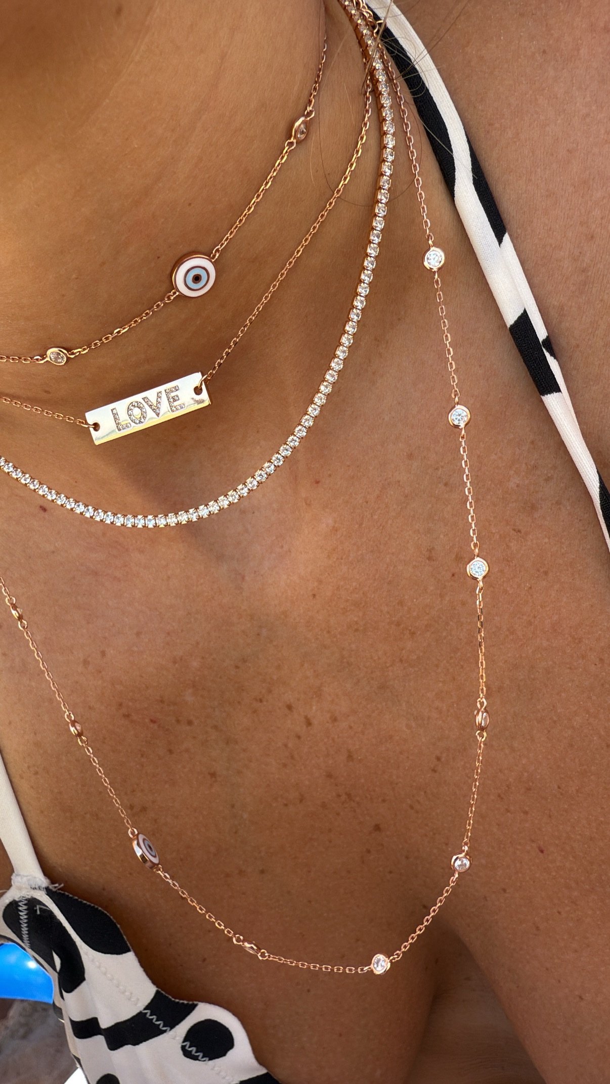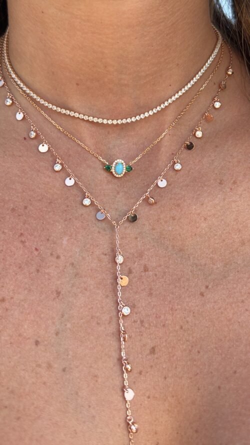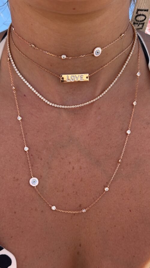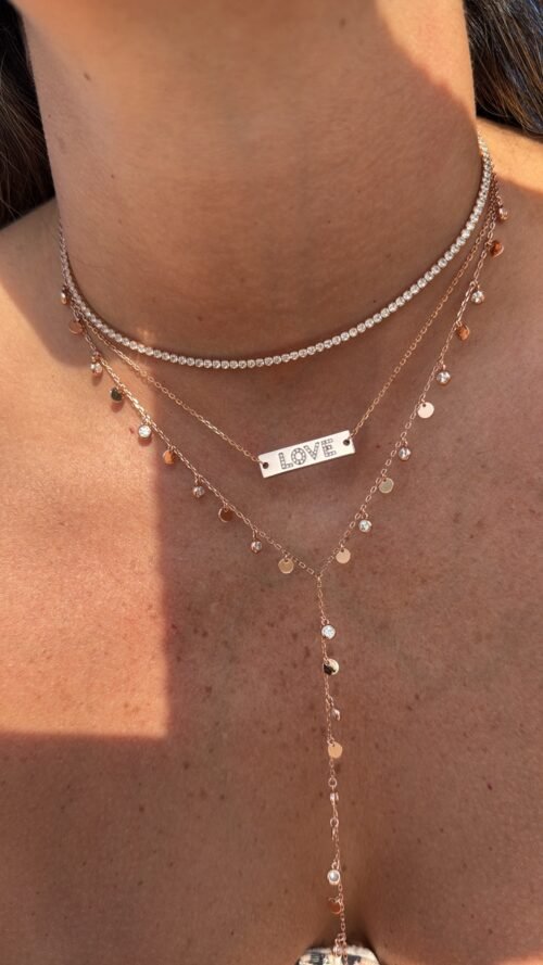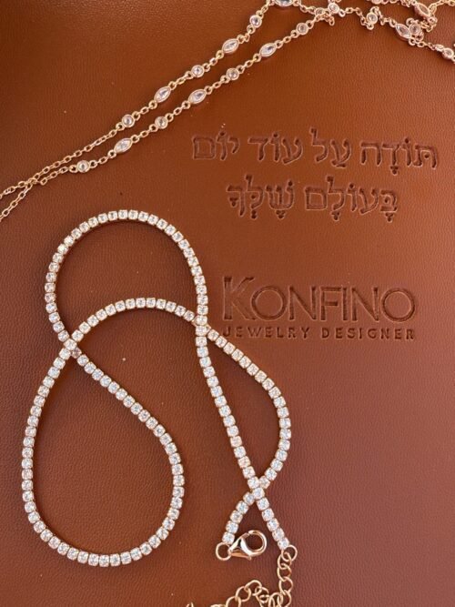שרשרת טניס קולר קלאסי, מכסף טהור 925 בציפוי רוז גולד, משובצת זרקונים.