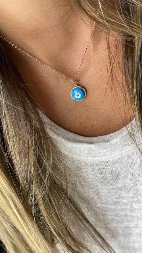 שרשרת עין מלאה עגולה טורקיז