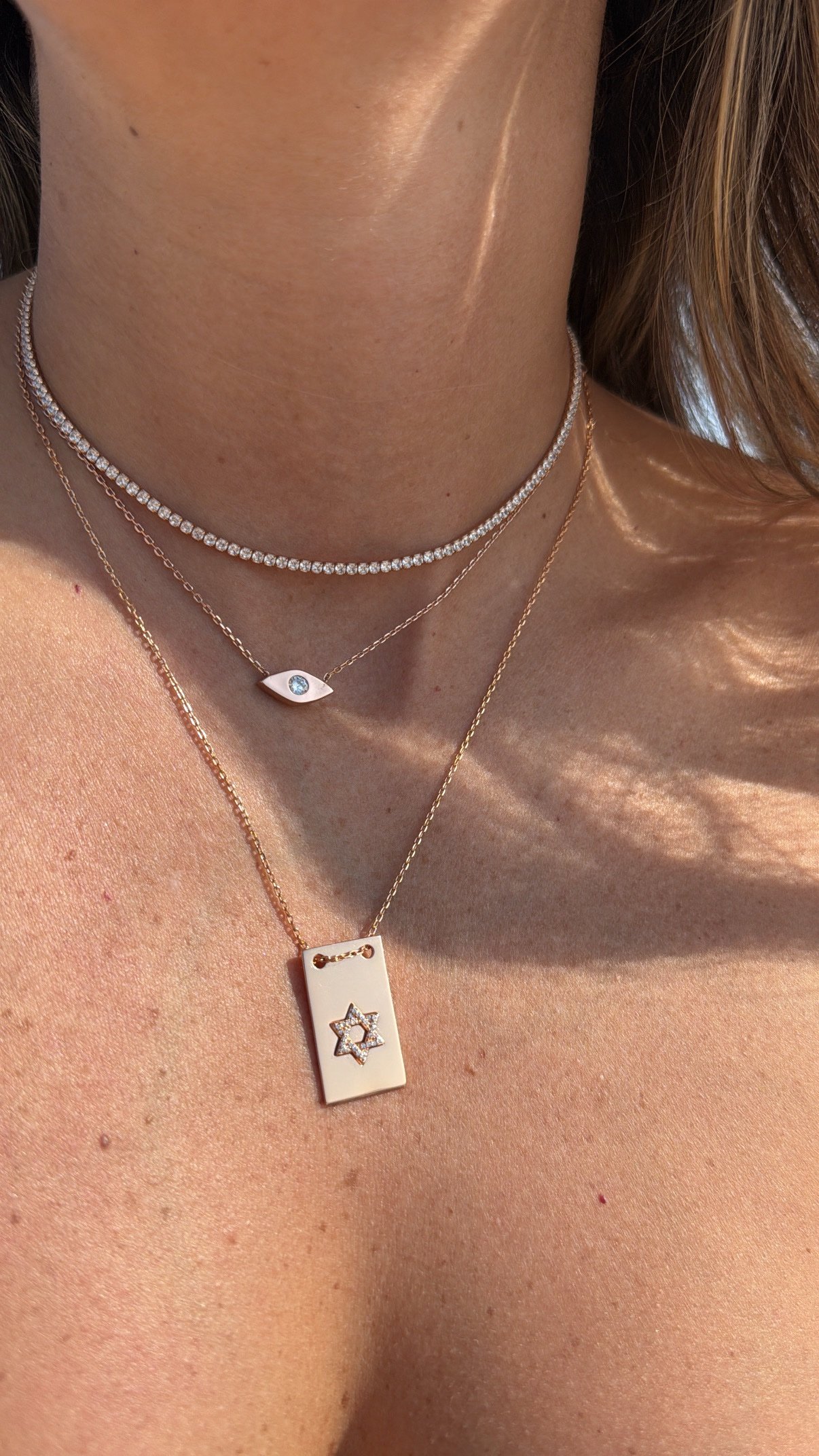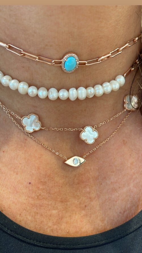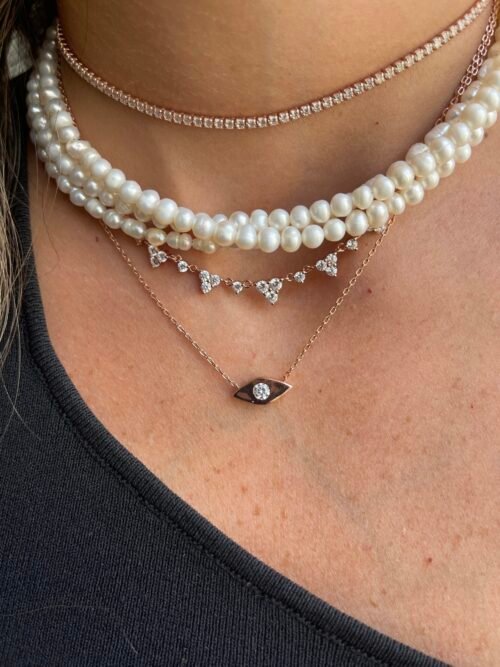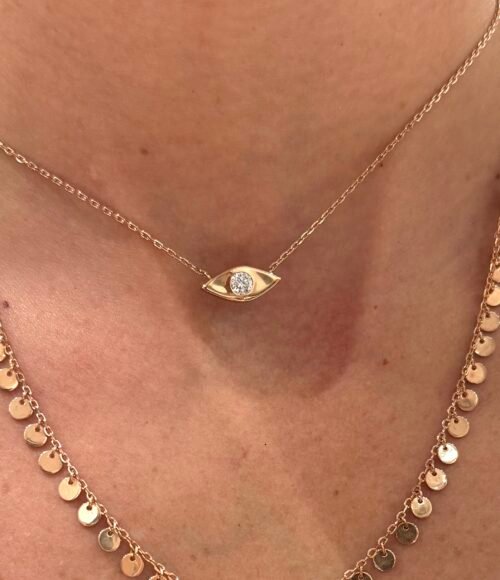 שרשרת עין קטנה זרקון מכסף טהור 925 בציפוי רוז גולד.