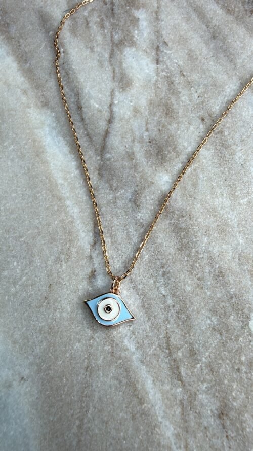 שרשרת עין קטנה אמייל תכלת מכסף טהור 925 בציפוי רוז גולד.