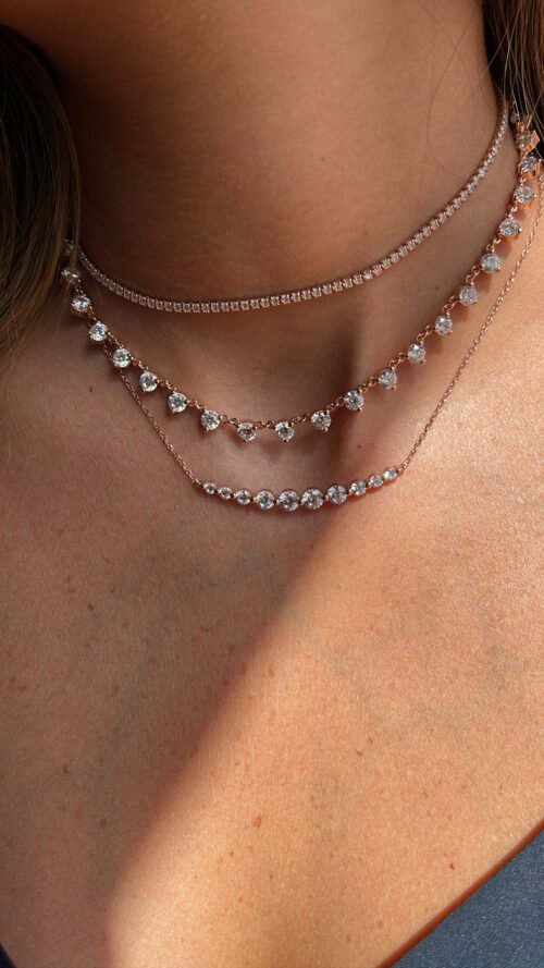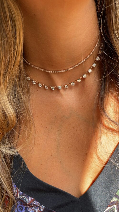 שרשרת קולר זרקונים מלא, מכסף טהור 925 בציפוי רוז גולד, משובצת זרקונים.
