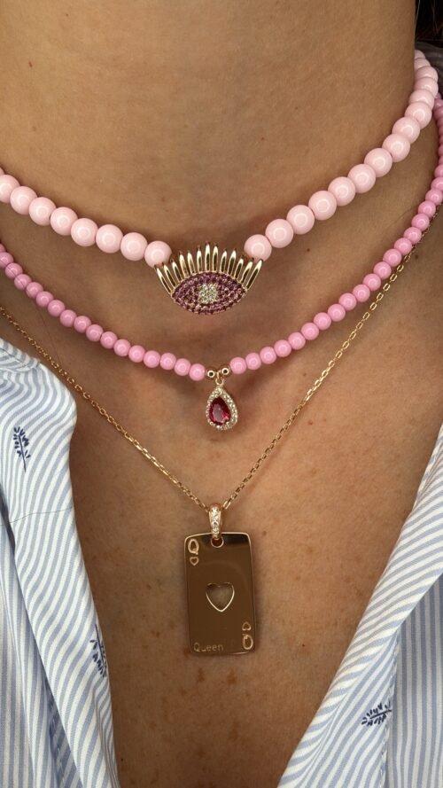 שרשרת דיסקית Queen לב מכסף טהור 925 בציפוי רוז גולד, משובצת זרקונים .