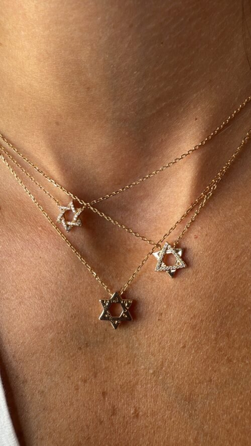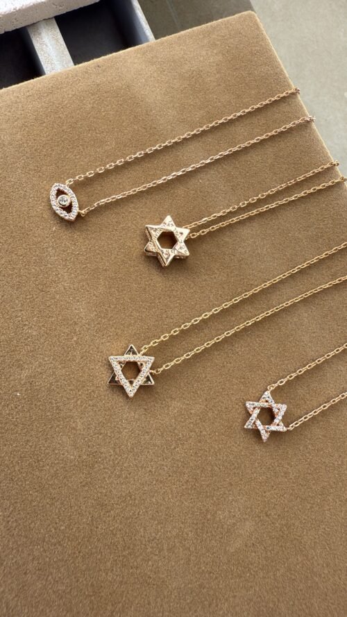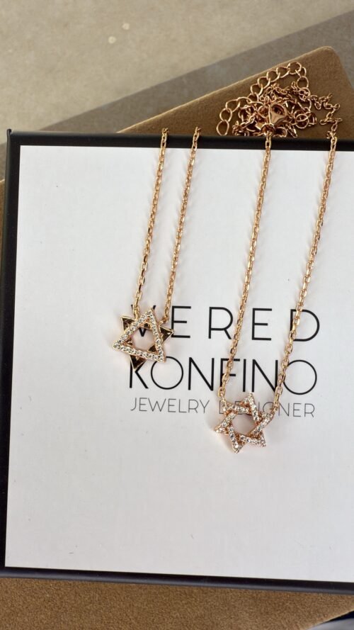 שרשרת מגן דוד חצי משובץ מכסף טהור 925 בציפוי רוז גולד, משובצת זרקונים .