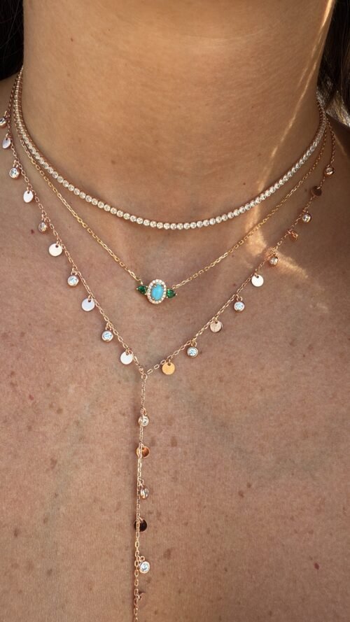 עין קטנה אובלי טורקיז ושילוב של ירוד אמרלד מכסף טהור 925 בציפוי רוז גולד, משובצת זרקונים .